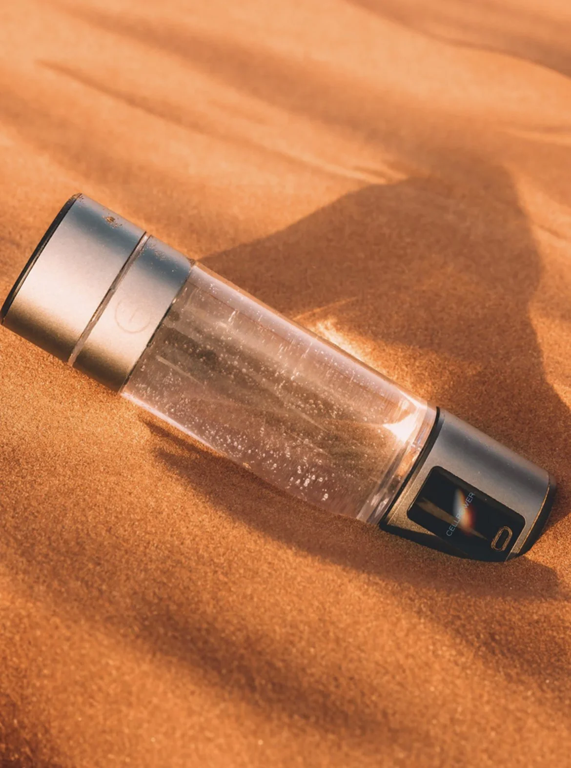 This bottle is expertly engineered to produce water enriched with bioavailable molecular hydrogen.